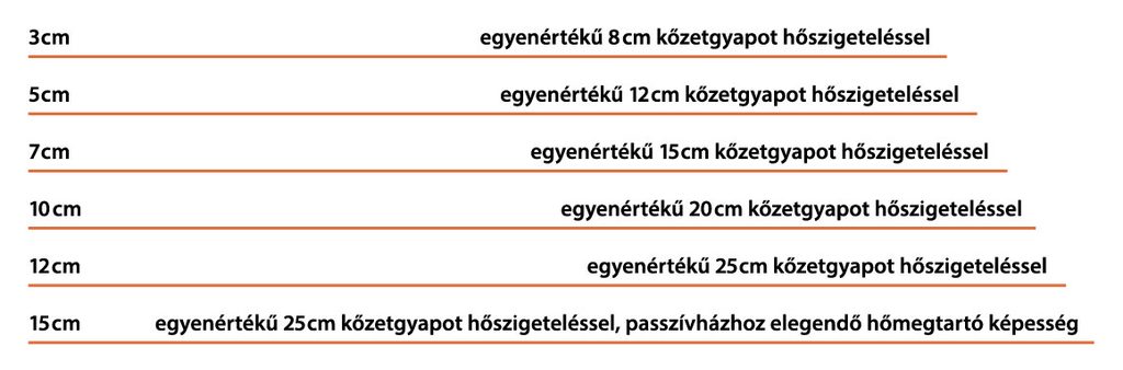 A zárt cellás purhabot pazarlás 10-12 cm feletti vastagságban elkészíteni. Ugyanis hiába növeljük a réteget, a hőszigetelő hatás már csak elhanyagolható mértékben növekszik. Az is látszik viszont, hogy már 3 cm "vékonyságban" megfogja a hőveszteség háromnegyedét!